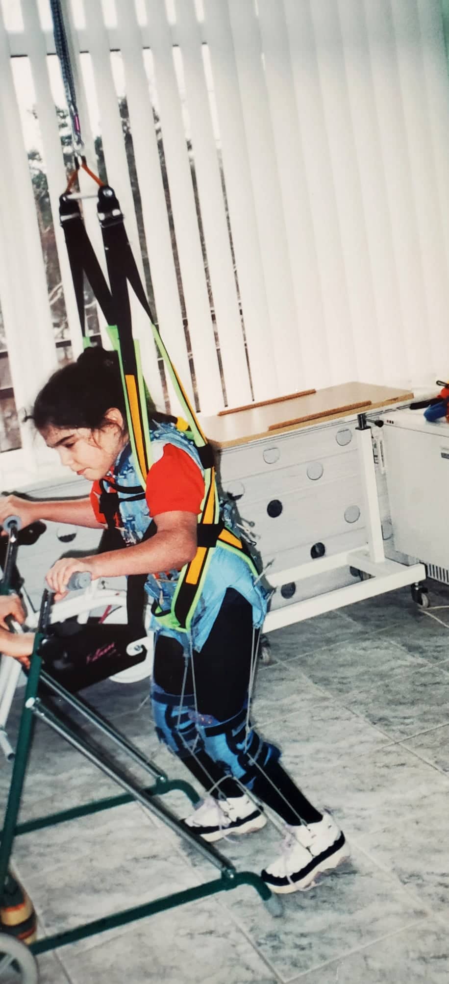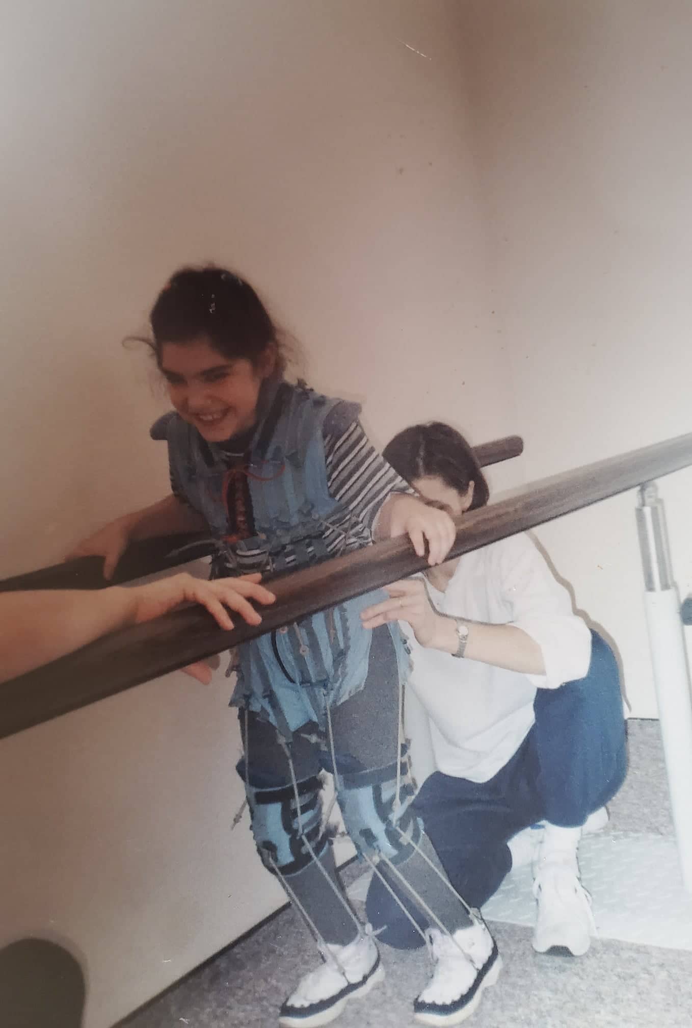 In the end, my 9-year old understanding of my body and definitions of success informed by ableist tendencies, deemed the 4-week physically daunting happiness building endeavour as a failure: I returned with mobility devices in tow. I may have been more independent, had stronger core stability, improved dynamic movement and balance, but these gains were eclipsed by preconditions of success correlated with independent walking. Thus ensued a lengthy lapse in any physiotherapy or consideration of the well-bing of the physical body. This was a form of defiance and dissociation. I was a willing child, never whining; I was a compliant child, rarely complaining. My expectations never came to fruition: I failed. It wasn’t until age 23 that I entered a local out-patient physiotherapy setting. This time, my physiotherapist being more intuitive, would caution his students or colleagues tasked with working with me: You really have to watch her. She won’t tell you, she smiles, but her smile masks pain.