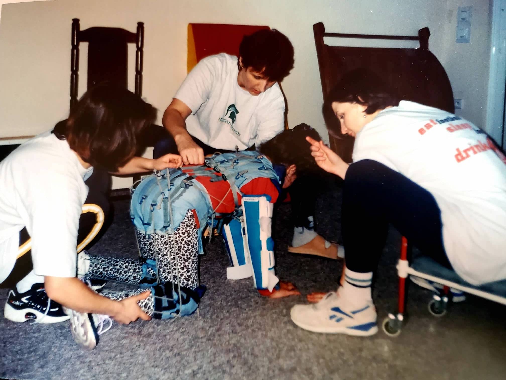 Personal photograph collection. Taken circa 1998/1999, images document my experience at the Euromed Rehabilitation Centre in Poland.2Some photographs feature my wearing the ADELI Suit(in more recent iterations known as the EuroSuit, an improved version of its predecessor).3