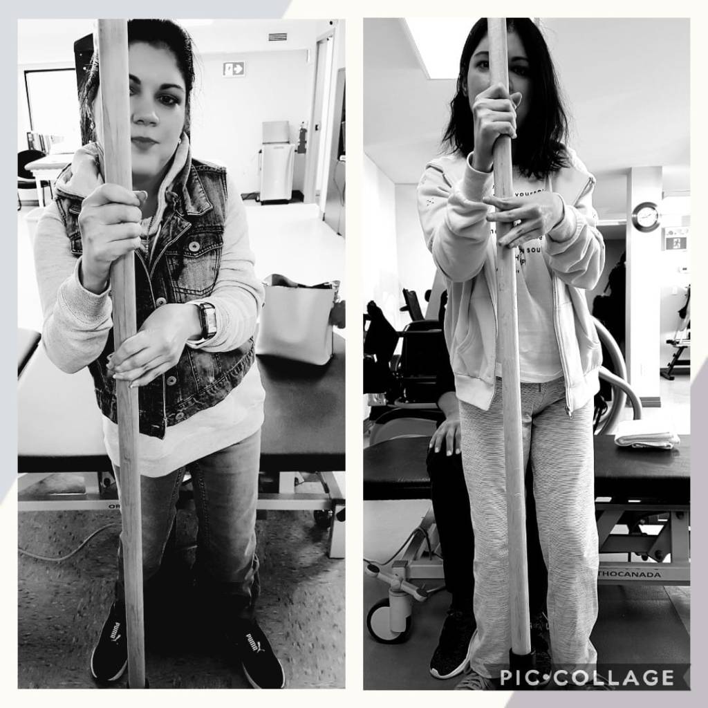 From left to right: Pre-spinal fusion, February 2018; Post-spinal fusion, March 2019. Both images captured by a physiotherapist.