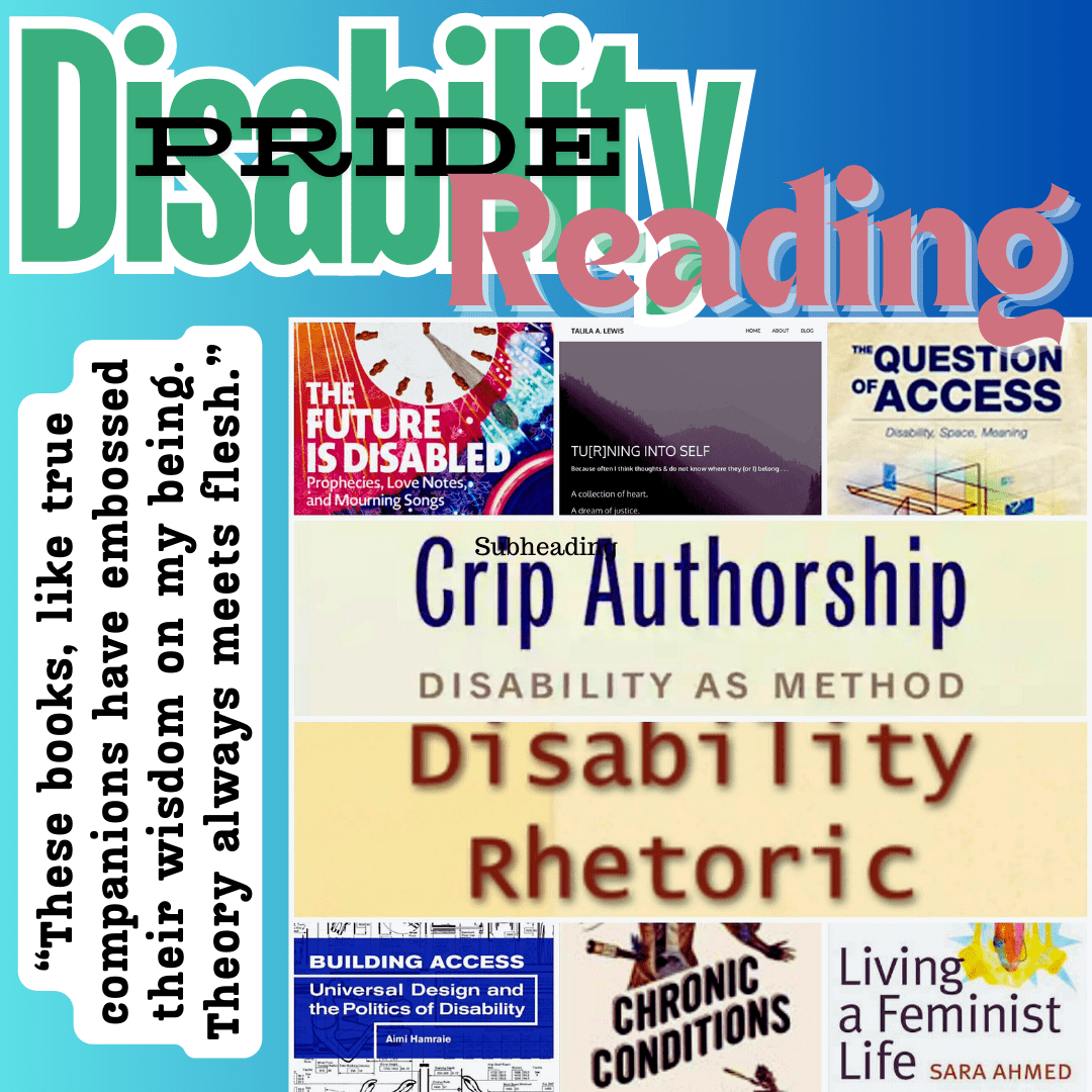 To cultivate disability pride is to find community and companionship. Stories of disability, each unique and nuanced, echo a singular plurality–a connecting and affirming limn highlighting the inextricable intersections of oppression, creative resilience, and pride. It is a call to solidarity. Recognizing that ableism breeds all forms of oppression and inequality has widened my call for justice. Adopting an anti-ableist approach has led me to those seeking to transform everyday institutions by exposing the central interlinkage between ableism, racism, sexism, classism, and all other discriminatory “isms” perpetuating exclusion, hostility, or violence. This community has revealed itself to me in several iterations: institutional diversity consultants, writers; and other disabled activists, authors, and colleagues. Colleagues have become allies. Authors’ theories and narratives have illuminated experiences of disabled or activist grief and joy igniting my own contribution to making life more equitable by making it accessible. Notably, it has brought me in touch with books (and other forms of texts). Sprayed with coffee stains because I was startled out of my train of thought in the midst of reading or pages marked by tears because someone else’s narrative captured an essence of my lived experience, passages have been highlighted, notes have been scribbled, and corners have been earmarked for future citation; these books have lended the ideas and words to contextualize my own thoughts. Like true companions, these books have embossed their wisdom on my being. Theory always meets flesh. They have revealed a lexicon to decode how oppression functions and feels. They have all contributed tools to dismantle systems of ableism and expanded my understandings of disability beyond medical explanations providing the literary, theoretical, rhetorical, and artistic methods to flesh out my own disabled grief and joy. I extend a connective limn to anyone who wishes to join in allyship of disabled pride. Listed below are some of the books that reframed my thinking and feeling of disability. This list is not exhaustive. There are many, many authors and activists from various fields, disciplines, and other forms of credentialed knowledge whom have influenced my own authorship. This is a starting point for those that are new to these ideas and concepts…and hopefully a point of expansion for those living disabled lives.